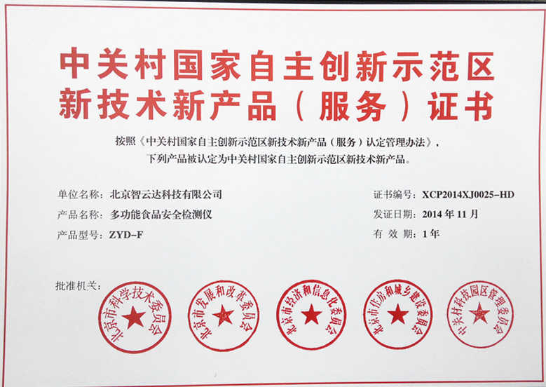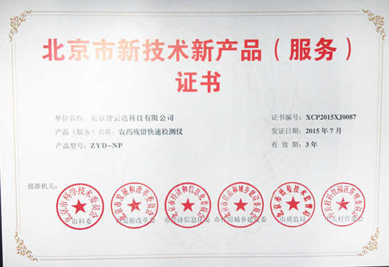 北京市新技術新產品(服務)證——農藥殘留...