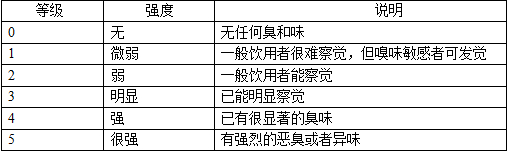 臭和味:去水樣100ml,置于三角瓶中,振搖后聞水的氣味,用適當?shù)脑~句描述,并按六級記錄其強度。同時取少量的水入口,不要下咽,嘗嘗水的味道,并加以描述,按六級記錄其強度。