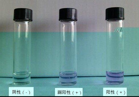 5分鐘內(nèi),若試劑B瓶中的溶液不變色,則判為陰性(-);若出現(xiàn)紫色,則可判定樣品中含有拉非類(lèi)物質(zhì)即為陽(yáng)性(+);若滴加樣本溶液至試劑B瓶后,背景顏色為淡黃色,3分鐘內(nèi)顏色加深,也判為陽(yáng)性(+)。