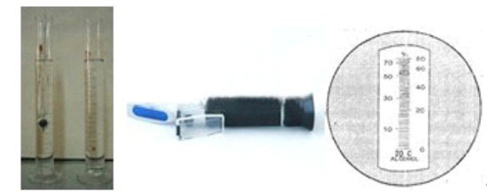 便攜式酒醇速測儀;玻璃浮計;量筒;非 20℃環(huán)境操作時需要乙醇對照液。